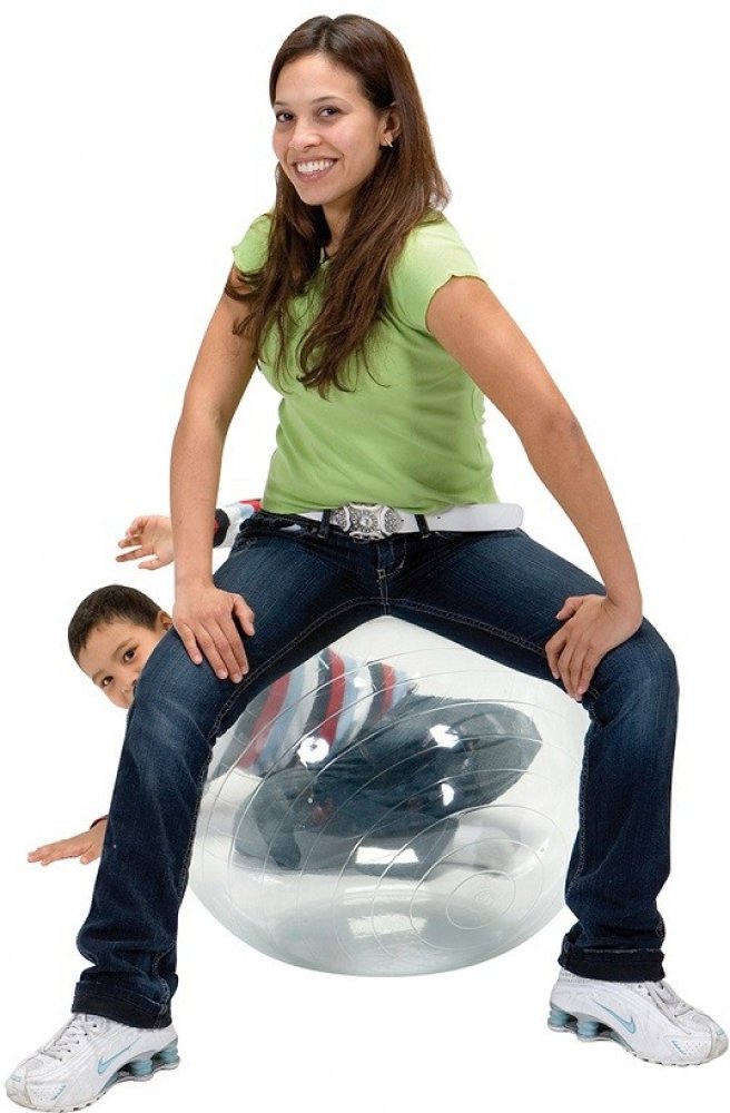 Při výběru správné velikosti velkého míče dbejte na to, aby hýždě byly o trochu výše než kolena. Správná velikost velkého míče se určuje podle výšky postavy nebo délky paže, měřeno od ramenního kloubu ke konečkům prstů.