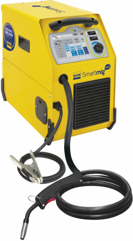 Jednofázová MIG/MAG (CO2) svářečka GYS SMARTMIG 142 s jednoduchým displejem pro svařování MIG/MAG (průměr drátu 0,6-0,8 mm) i pro svařování trubičkovým drátem (0,9 mm). Jednofázová MIG/MAG (CO2) svářečka GYS SMARTMIG 142 s maximálním svařovacím proudem 140 A s jednoduchým intuitivním displejem.
