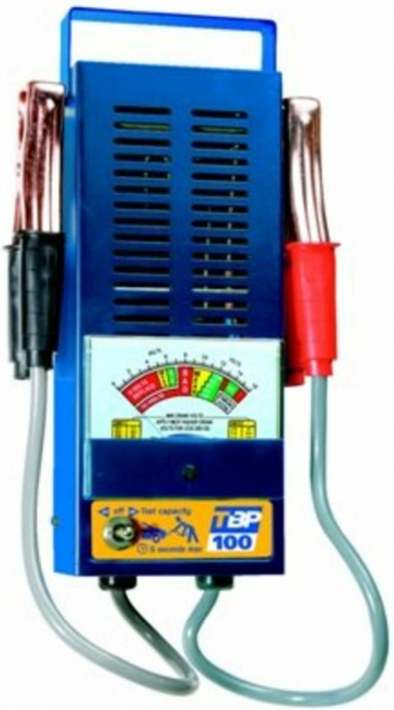 Zátěžová zkoušečka startovacích autobaterií, pro napětí 6-12 V, zátěž 100 A, analogová – GYS TBP100Jednoduchý, velmi rychlý a přesný bateriový tester se čtyřbarevnou stupnicí určený pro zkoušení baterií 6-12 V s kyselinovým elektrolitem. Rozsah měření od 20 do 100 Ah. Měření je možné provádět i na odpojené baterii. Testerem je možno měřit i dobíjecí okruh (alternátor). Během 5-10 vteřin analyzuje nabití autobaterie, okamžitý (reálný) startovací proud a stav dobití autobaterie. Obsahuje ochranu proti přepólování. Měření lze provádět v rozsahu teplot od 0 do 50 °C. Napájení je přímo z měřené autobaterie. Technické parametry: - zátěž až 100 A - pro olověné baterie 6-12 V do 100 Ah - lze použít také jako voltmetr do 16 V - rozměry: 160 × 18 × 300 mm