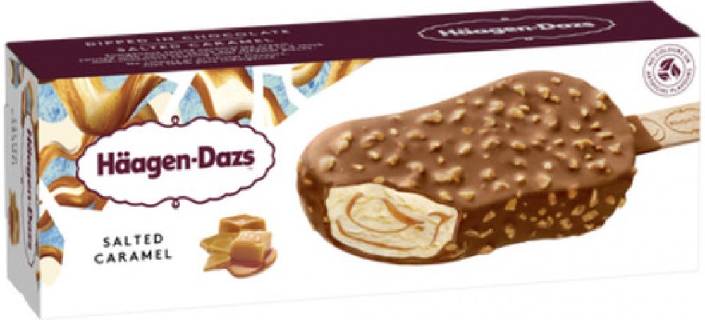 Karamelová zmrzlina (smetana, kondenzované odstředěné mléko, cukr, vaječný žloutek, sušený glukózový sirup, kondenzované plnotučné mléko, glukózový sirup, jedlá sůl, přírodní vanilkové aroma), poleva z belgické čokolády (kakaové máslo, cukr, kakaová hmota, máselný tuk, sušené plnotučné mléko,kokosový olej, sušené odstředěné mléko, emulgátor: sójový lecitin, přírodní vanilkové aroma), solený karam...