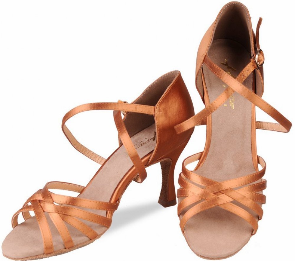 Při zkoušení této obuvi myslete i na to, že satén ještě povolí (ne tolik, jako kůže, ale povolí) a zahříváním se přizpůsobí tvaru nohy. Proto není vhodné kupovat boty volnější, protože je po roztančení můžete mít zbytečně volné a budou vás omezovat v pohybu. Taneční bota by měla být těsnější, aby jste měli jistější krok.