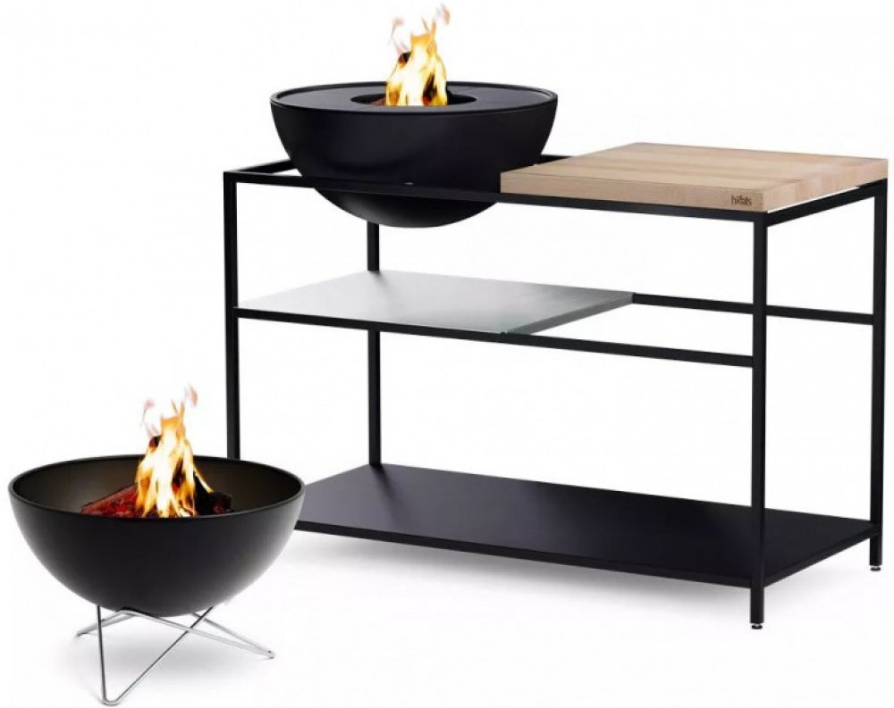 Součástí sady je rám se spodní policí z práškově lakované oceli, police z nerezové oceli, dřevěná deska a ohniště s funkcí grilu a dvě železné desky – zkrátka vše, co si grilovací mistr může přát.
