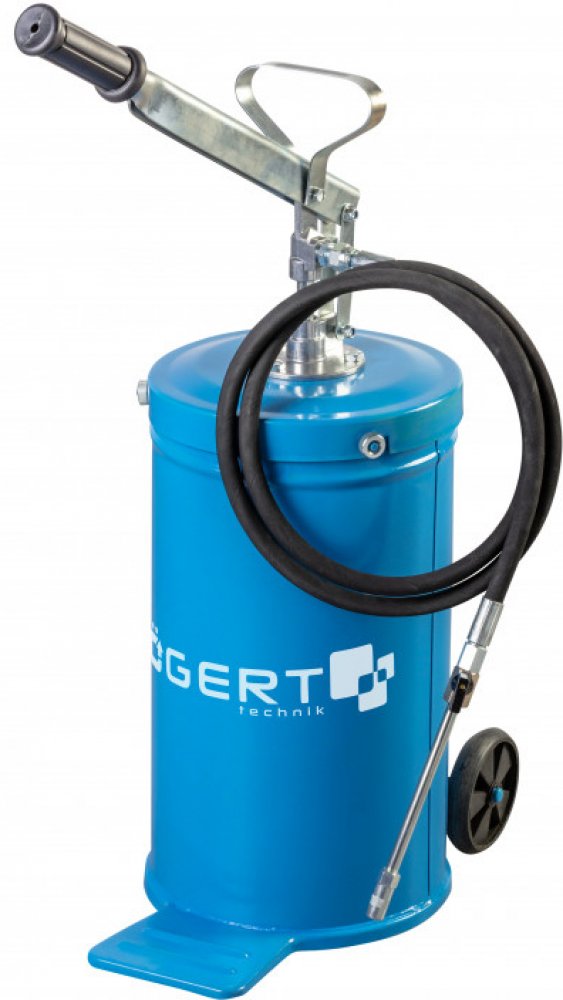 Liz mazací ruční 16l Hogërt HT8G913 Ruční maznice pro mazání mechanických dílů. pro profesionální použití v těžkém průmyslu, zemědělství, stavebnictví, automobilovém průmyslu při servisu průmyslových strojů, kombajnů, stavebních strojů, dodávek, nákladních a osobních vozidel ocelová nádrž 2 kolečka umožňují rychlou a pohodlnou přepravu na pracoviště odvzdušňovací ventil hliníková hlava hadice s ko...
