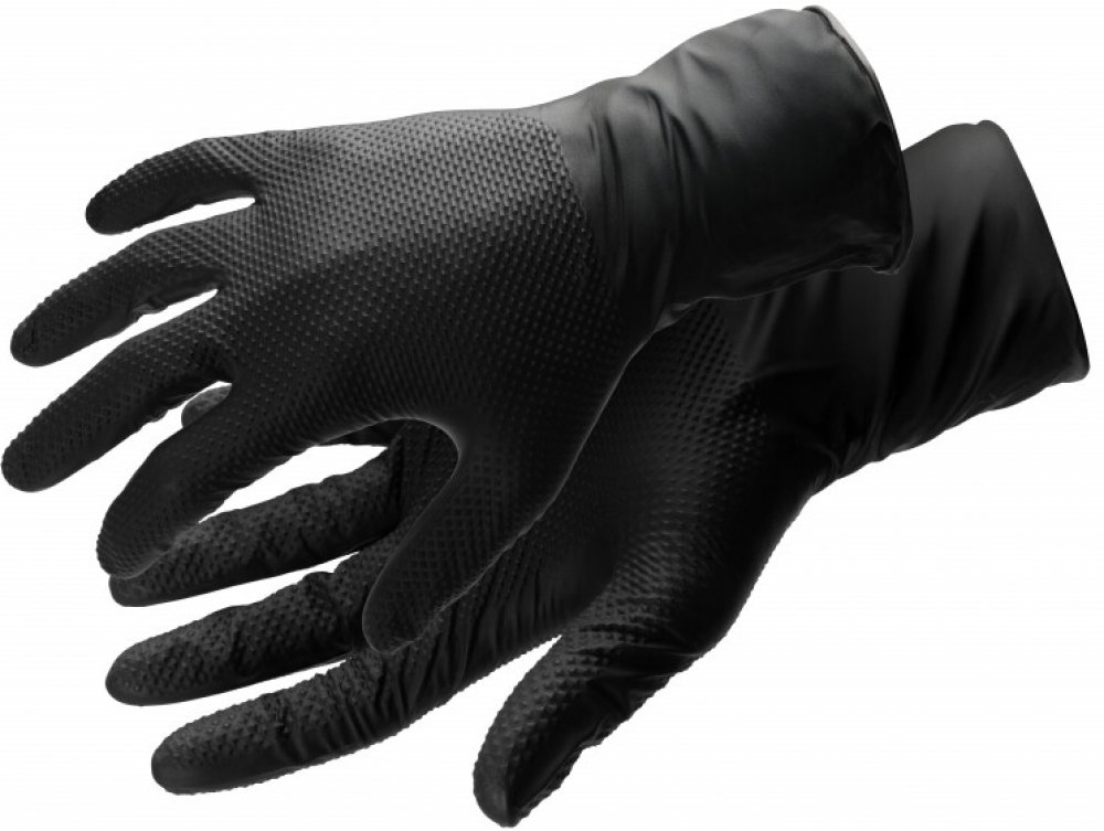 Jednorázové nitrilové rukavice s diamantovou texturou, které poskytují pevný úchop a účinnou ochranu v mastném a vlhkém prostředí. Vyrobeny z odolného materiálu odolného vůči chemikáliím, ideální pro náročné podmínky.