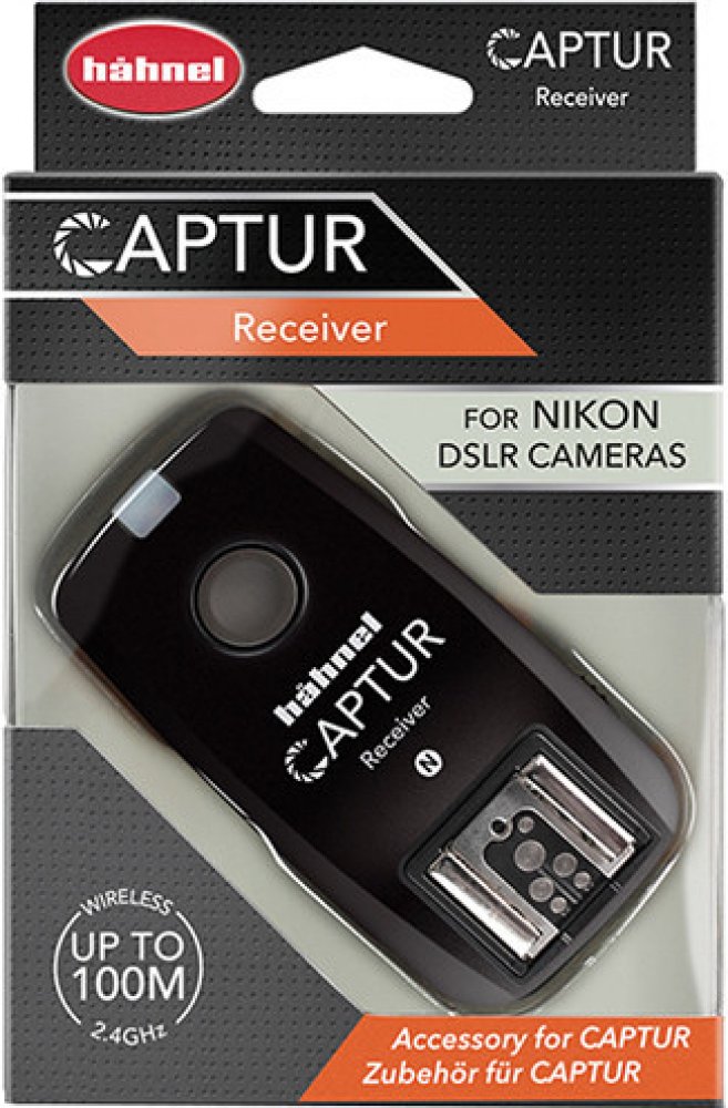 Samostatný přijímač kombinovaného dálkového ovládání fotoaparátu a spouště externího blesku Hahnel Capture Remote Nikon. Více přijímačů umožňuje ovládat větší počet blesků jedním vysílačem.(baterie nejsou součástí balení)