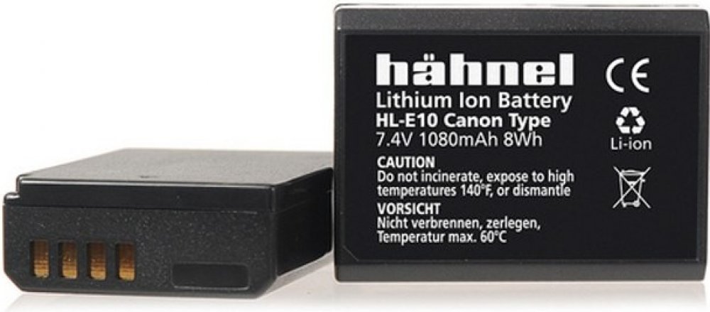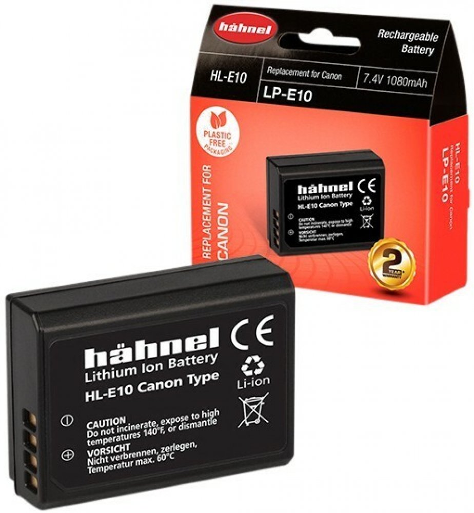 Hähnel HL-E10 je alternativní baterie k originální baterii Canon LP-E10. Baterie je vyrobena z vysoce kvalitních článků a disponuje ochranným obvodem proti přetížení a zkratu. Technické specifikace: Typ baterie: Li-Ion Napětí: 7.4V Kapacita: 1080mAh Kapacita (Wh): 8Wh