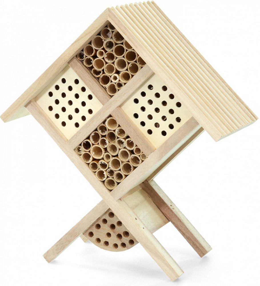 Hmyzí hotel Herning. Vhodný úkryt pro divoké včely, cizopasné vosy, lacewings a berušky. Vyrobeno z přírodních materiálů, jako je dřevo a bambus.