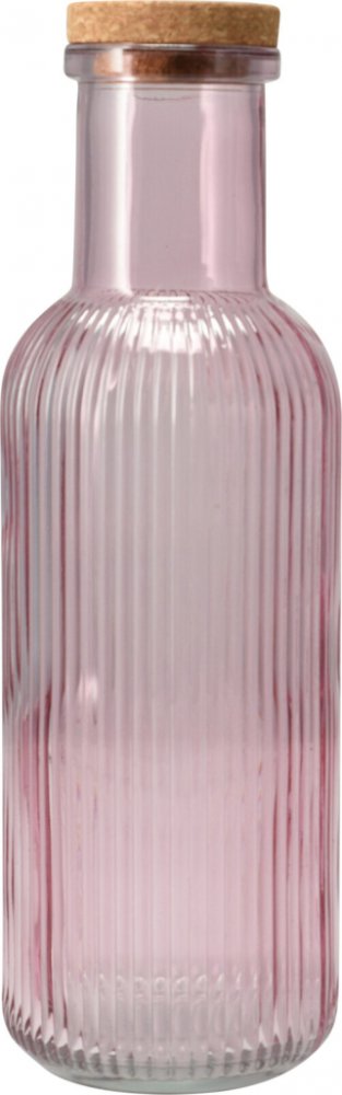 Láhev o rozměrech přibližně 87 x 278 mm je vyrobena s ohledem na funkční design. Má vertikální rýhování (žebrování), které nejen skvěle vypadá a dodává sklu texturu, ale zároveň zlepšuje úchop. Jemně růžové sklo se stane osvěžujícím doplňkem na snídaňovém stole, při letní garden party, nebo i v dětském pokoji. Kombinace růžové barvy s přírodním korkem vytváří příjemný a neotřelý kontrast.