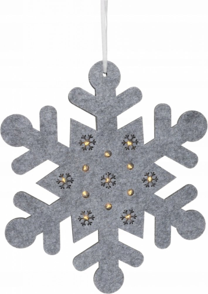 Nádherná sněhová vločka je ztělesněním vánoční kouzelnosti. Vyrobena z kvalitního filcu a osvícena LED osvětlením, tato vločka přinese do vašeho interiéru pohádkovou atmosféru.