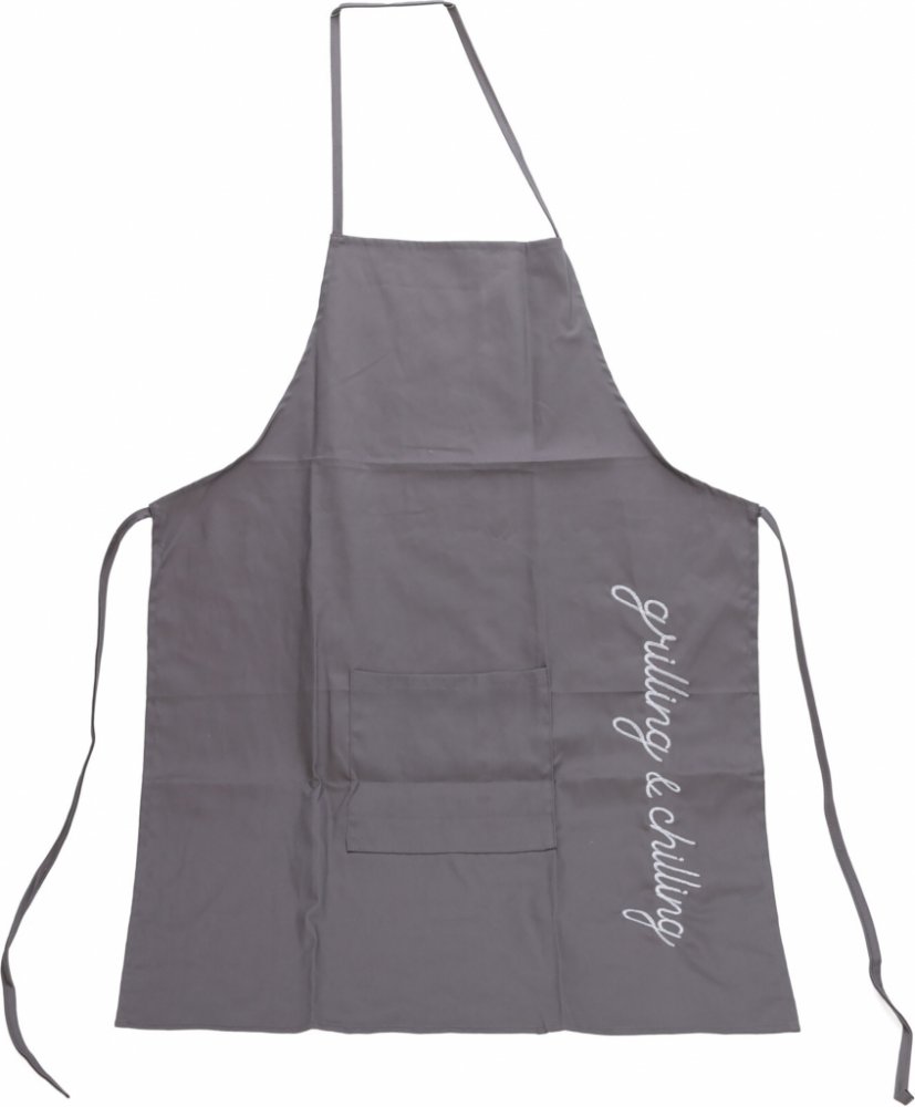 Vyrobena ze 100% bavlny, tato šedá zástěra o rozměrech 60x84 cm je nejen stylová, ale také pohodlná a odolná. Výšivka s nápisy "Grilling a Chilling" dodává zástěře hravý a moderní vzhled, který ocení každý grilovací nadšenec. Bavlněný materiál zajišťuje, že zástěra je měkká na dotek a snadno se udržuje. Ideální pro ochranu oblečení při grilování, zástěra na grilování je praktickým a stylovým doplňkem pro každou venkovní kuchyni.