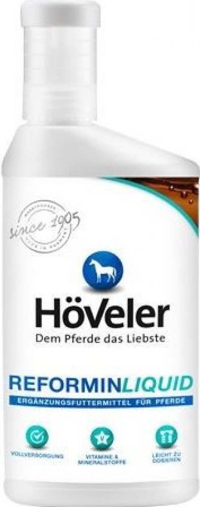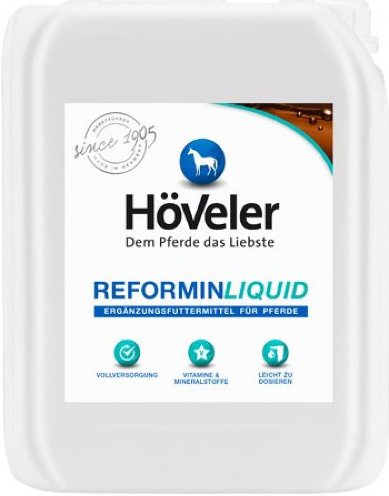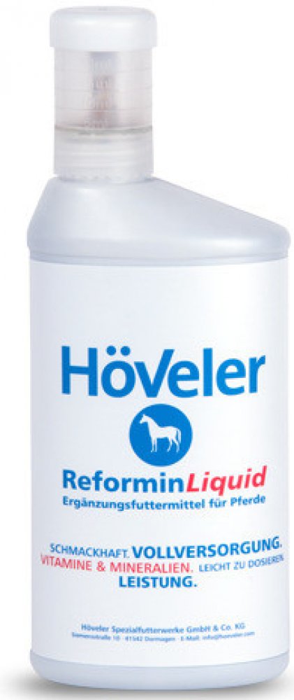 Reformin Liquid je ideální alternativou pro koně, kteří mají tendenci vybírat jednotlivé složky krmiva. Reformin Liquid je doplněk v tekuté formě pro všechny koně. Reformin je komplexní sada, která obsahuje vitamíny a minerály pro koně.