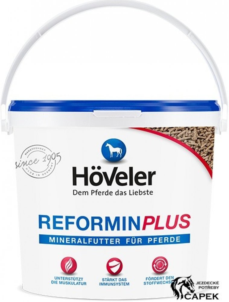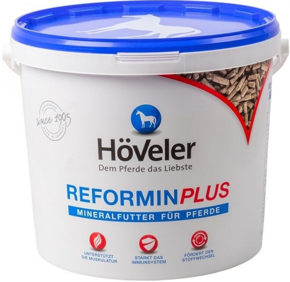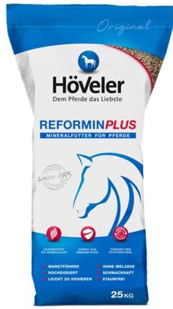 Reformin Plus podporuje látkovou výměnu, prevenci nedostatku živin a pomáhá udržet koně v dobrém zdravotním stavu a vitalitě. Výrobek neobsahuje melasu, je chutný a se snadným dávkováním díky vhodné struktuře pelet, které nezpůsobují prášení. Směs se doporučuje pro každodenní použití, když objemové krmivo neposkytuje dostatečné množství vitamínů a minerálních látek (např. Selen, měď, jód), a to zejména při intenzivním zatížení metabolismu zvířete (ať už jde o sportovní koně v tréninku či období březosti).