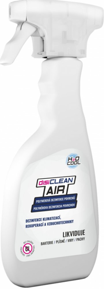 disiCLEAN AIR je tekutý bezchlórový dezinfekční roztok speciálně upravený k okamžitému použití pro rychlou dezinfekci ploch, povrchů, klimatizací, vzduchotechniky, rekuperačních jednotek a těžko přístupných míst fogováním (mlžením). Touto aplikací se dosahuje vysoké kvality dezinfekce, při nízké spotřebě dezinfekčního roztoku. Tento způsob aplikace je vysoce efektivní. Je charakteristický silným a dlouhotrvajícím antibakteriálním, antivirovým a protiplísňovým účinkem bez negativních vlivů na jakékoli ošetřované materiály. (sklo, dřevo, kovy, plast, papír, textilie, guma…)