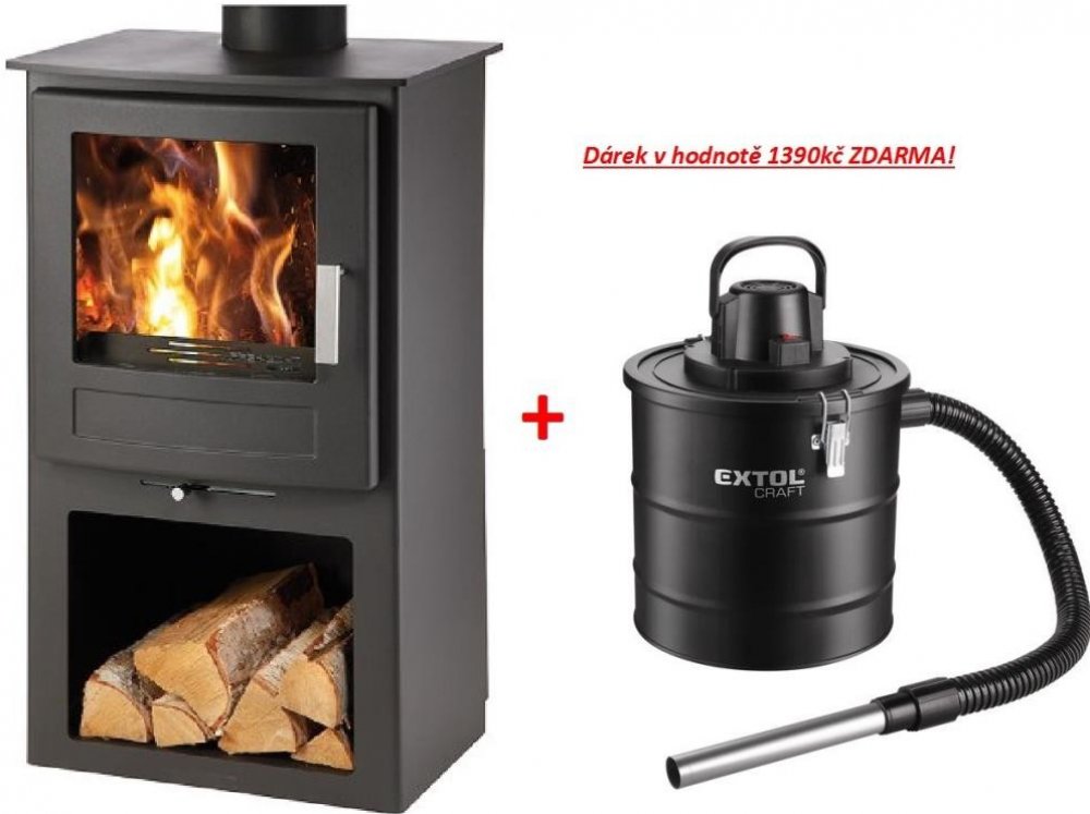zásuvku. Prostor ve spodní části kamen může být využit jako zásobník paliva.