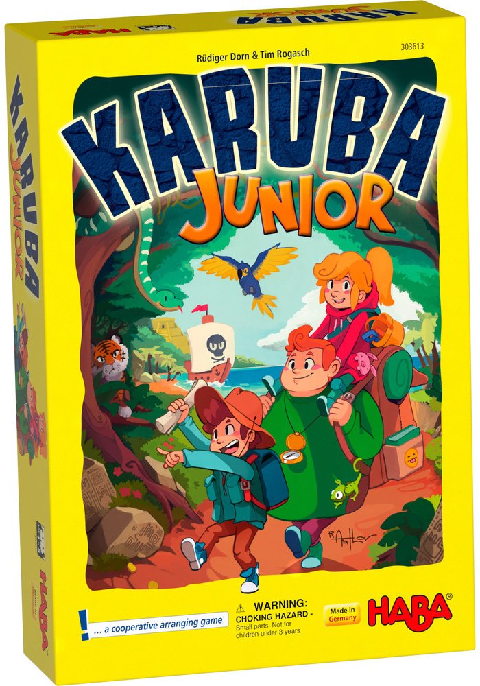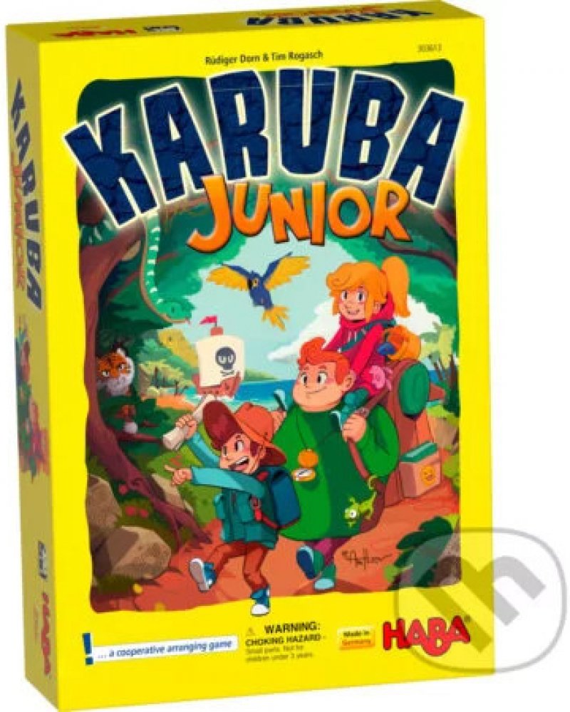 Kooperativní dobrodružná hra pro 1 – 4 hráče od 4 do 8 let. Délka jedné hry je 5 – 10 min. Slyšeli jste již o tajemném ostrově Karuba? Říká se, že hluboko v džungli se ukrývá cenný poklad. Tři odvážní dobrodruzi se proto vydali do džungle hledat truhly plné zlata a drahých kamenů. Pomůžete jim najít všechny poklady?