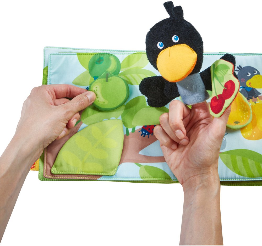 Každá stránka v knížce je věnována jednomu ovoci, které je možné sbírat nebo vložit zpátky pomocí suchého zipu. Na konci knížky je košík, do kterého můžete nasbírané ovoce uložit.