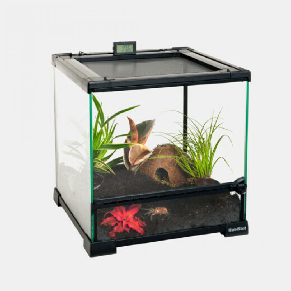SKLENENÉ TERÁRIUM – Vopred postavené mini sklenené terárium HabiStat má elegantný čierny dizajn so sklom od steny po stenu, ktorý poskytuje nerušený 360⁰ pohľad na vaše zviera. ZAČIERNENÉ STRANY - Zabezpečte bezpečnosť a súkromie pre vaše zviera pomocou dekorácie a rastlín v menších vopred pripravených nádržiach. JEDNODUCHÝ PRÍSTUP - Ľahký prístup cez predné otváracie dvierka alebo sieťovaný vrch na údržbu, kŕmenie a zdobenie. PERFEKTNÉ PRE - Toto mini terárium je ideálne pre Bio aktívne zostavy. Vodotesná základňa umožňuje drenážne vrstvy pomocou hlinených guľôčok HabiStat a drenážnej sieťky pre bioaktívny obal, takže prebytočnú vodu zhromaždenú v drenážnej vrstve možno podľa potreby odsať! UPOZORNENIE - Zaistite, aby bolo terárium umiestnené na rovnom povrchu a podopreté všetkými štyrmi rohmi. Terárium udržujte mimo dosahu priameho svetla s výraznými teplotnými výkyvmi.