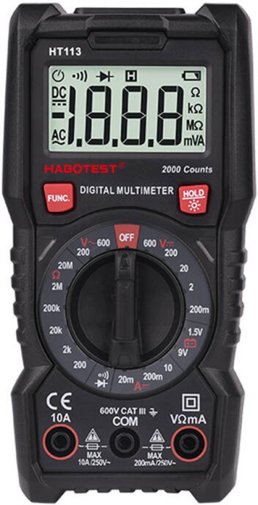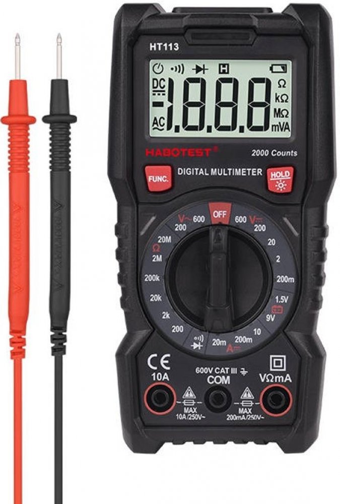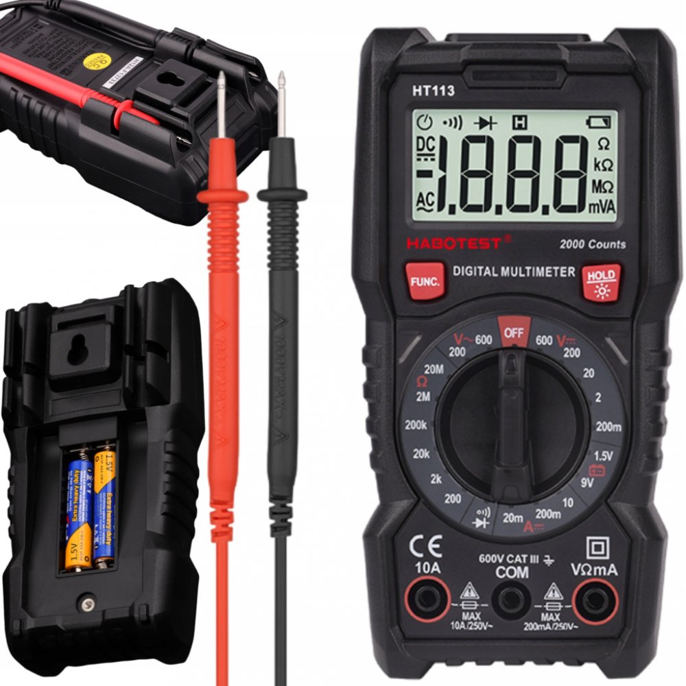 Vybavte se lehkým a praktickým digitálním univerzálním multimetrem Habotest HT113, který vám umožní pohodlně a bezpečně měřit napětí, proud, odpor a mnoho dalších hodnot. Habotest HT113 je vybaven praktickým stojánkem, takže jej můžete postavit na poličku. Pouzdro je vyrobeno z měkkého materiálu, je příjemné na dotek, ale také velmi odolné, odolné proti opotřebení a pádu.
