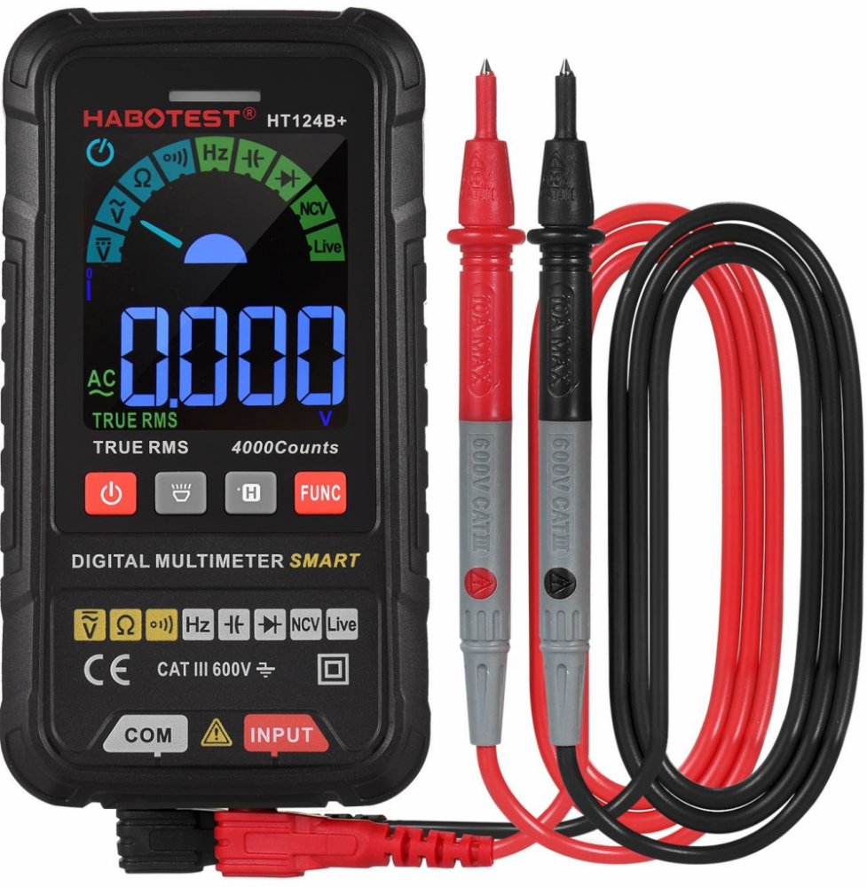 Digitální univerzální multimetr Habotest HT124B+ je šikovný přístroj, který překvapí rozsáhlostí svých možností. Umožňuje mimo jiné měřit s vysokou přesností střídavé a stejnosměrné napětí, odpor, spojitost nebo kapacitu. Kromě toho nabízí funkci Live Test, umožňuje testování diod, bezkontaktní detekci napětí (NCV) a mnoho dalšího. Důležité je, že multimetr disponuje praktickými tlačítky, pomocí kterých můžete efektivně zvolit funkci.