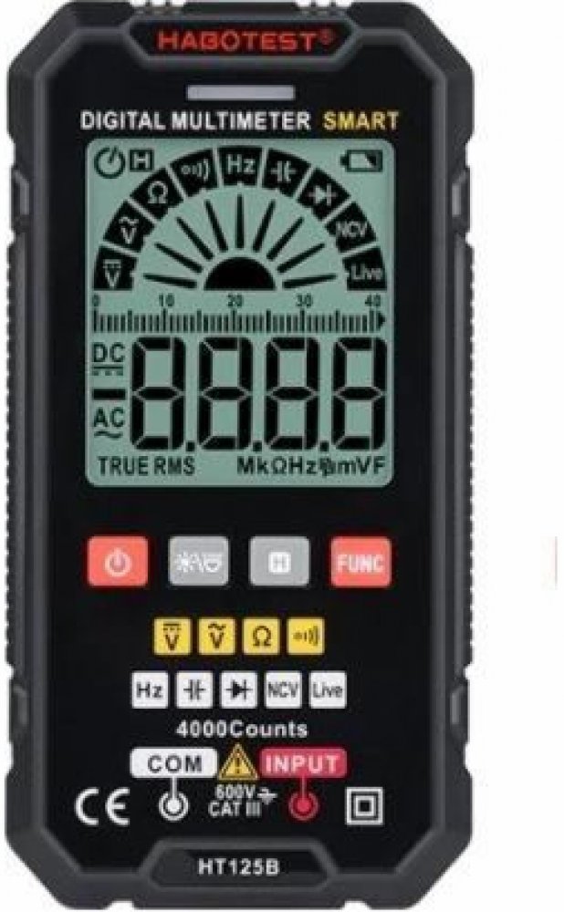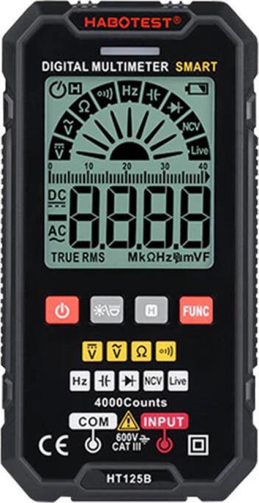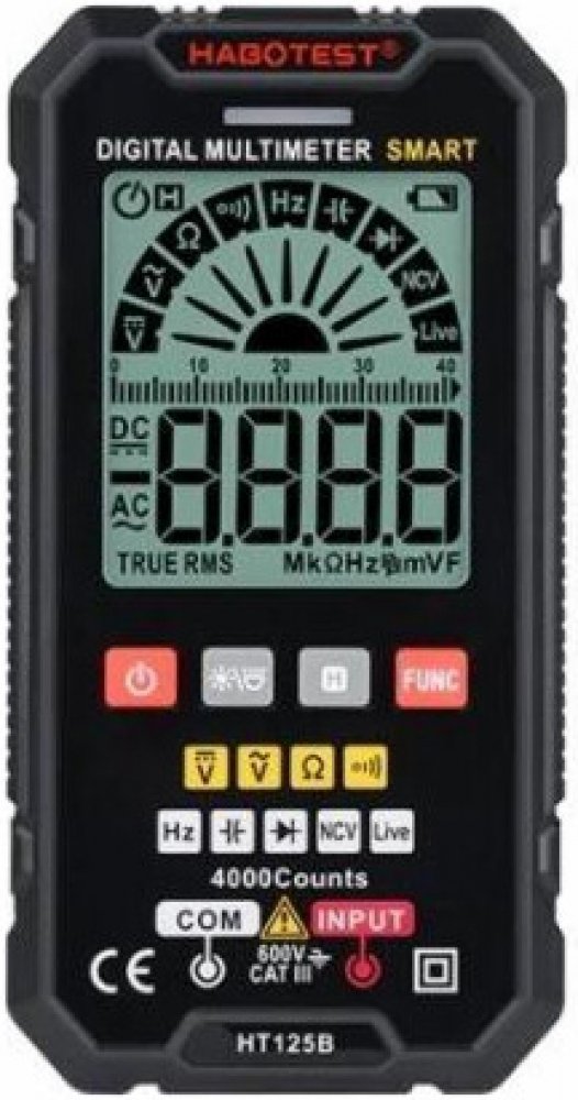 HT125B je chytrý a odolný multimetr od společnosti Habotest. Vyznačuje se vysokou přesností měření, což znamená, že jej můžete používat i ve venkovním prostředí. Je vybaven velkým displejem a silikonovými tlačítky - jeho používání je jednoduché a pohodlné. Je kompaktní a lehký - má také LED svítilnu, která vám umožní pracovat i na tmavých místech. K napájení jsou zapotřebí dvě baterie AAA 1,5 V. Ty však nejsou součástí balení a je nutné je zakoupit zvlášť. Můžete jej použít k měření napětí, odporu, kapacity atd.