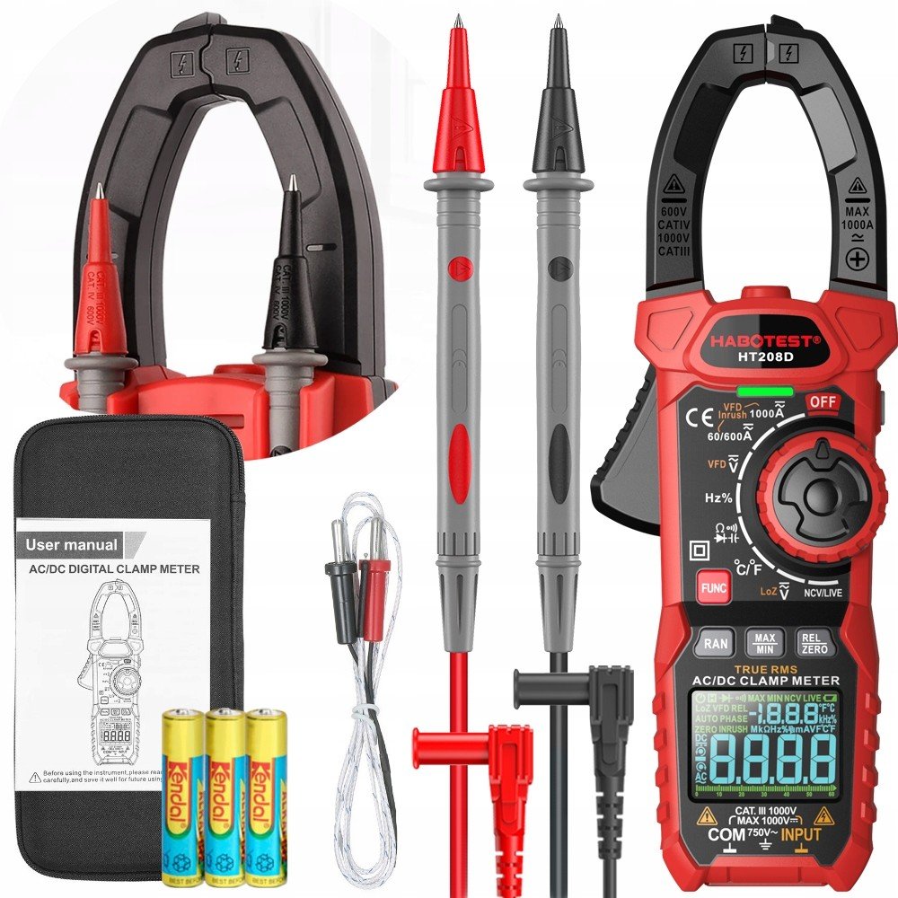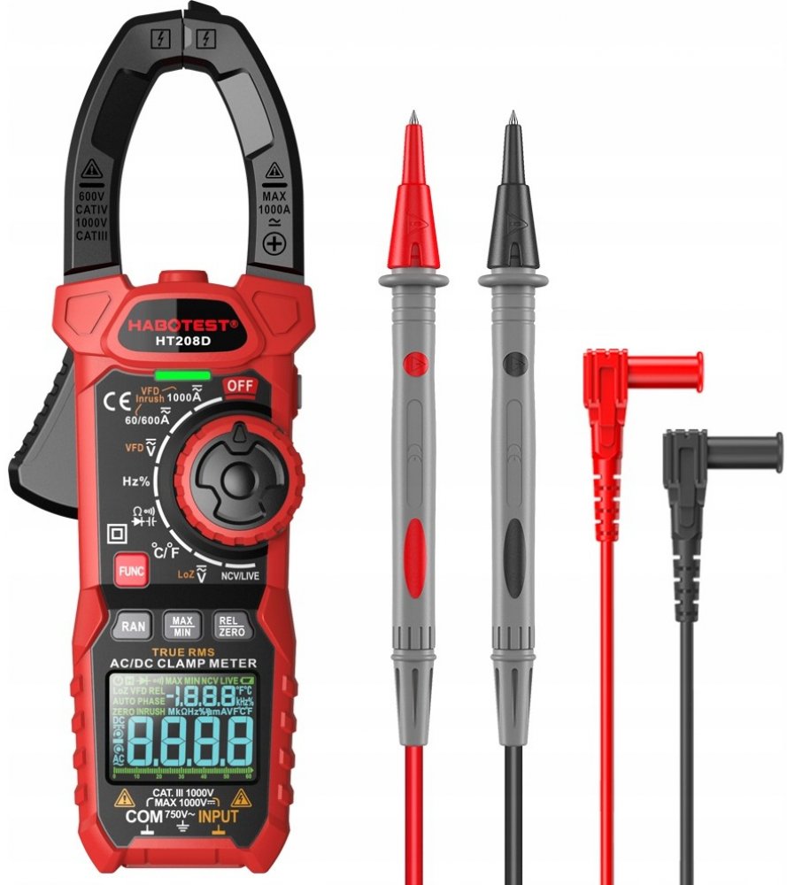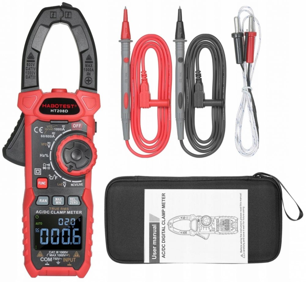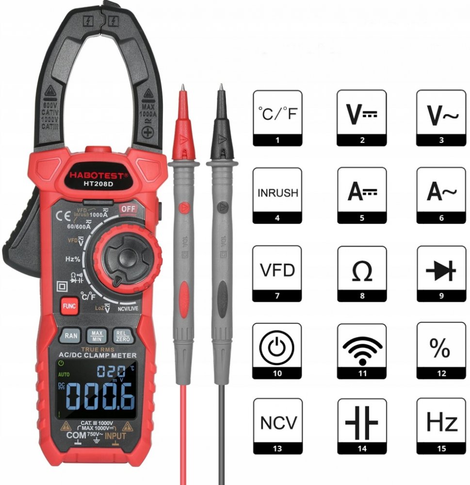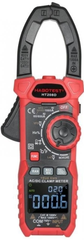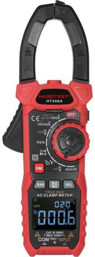 HT208D je praktický přístroj, s jehož pomocí můžete kontrolovat hodnoty různých parametrů, například střídavé a stejnosměrné napětí a proud, odpor, teplotu, rozběhový proud a mnoho dalších. Výrobek poskytuje přesná měření a výsledky se zobrazují na displeji LCD. HT208D je také vybaven svítilnou pro pohodlnou práci v tmavých místnostech.
