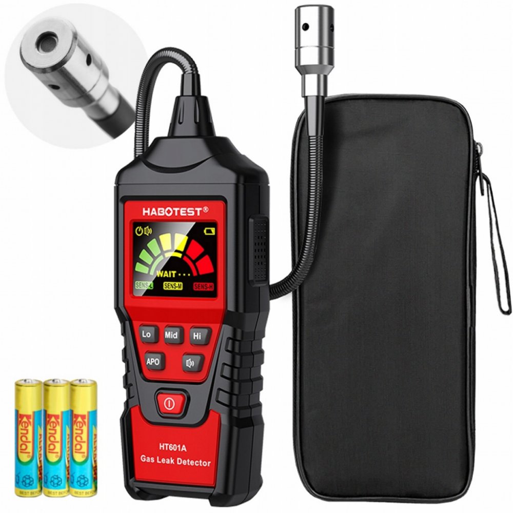Detektor úniku plynu Habotest se vyznačuje vysokou citlivostí a přesností. S jeho pomocí rychle provedete měření, jehož výsledek se zobrazí na přehledném barevném LCD displeji. HT601A má také zvukový alarm. HT601A je šikovný a odolný – osvědčí se v mnoha aplikacích.Zařízení poskytuje velmi rychlou odezvu a díky extrémně citlivému senzoru může pracovat s přesností až ±10 FS. Detekuje úniky několika různých plynů, jako je mimo jiné metan, oxid uhelnatý, hexan a acetylen. Využijete ho tedy na mnoho způsobů. Barevný HD displej výrazně usnadňuje práci se zařízením. Najdete tam mimo jiné výsledky měření prezentované ve formě sloupcového grafu a také indikátor vybité baterie.Detektor je lehký, kompaktní a skvěle padne do ruky. Je vyroben tak, aby vám mohl perfektně sloužit dlouhá léta. Je odolný a není náchylný k poškození – překvapí vás svým spolehlivým výkonem. Snadno se také přenáší – můžete si jej bezpečně vzít s sebou, kamkoli potřebujete. Vyžaduje 3 baterie AAA 1,5V, které je nutné zakoupit samostatně.
