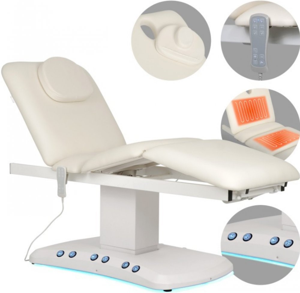 - Funkce vyhřívání povrchu (35 °C až 60 °C):Integrované vyhřívací rohože v sedáku a opěradle poskytují teplo a pohodlí, které oceníte zejména při relaxačních, kosmetických nebo depilačních procedurách.