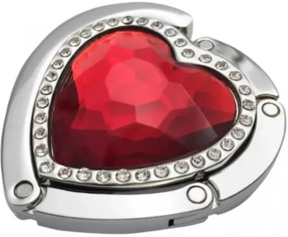 Háček na kabelku ve tvaru srdce s krystalem a zirkony po obvodu. Praktický dárek - pohotový pomocník.