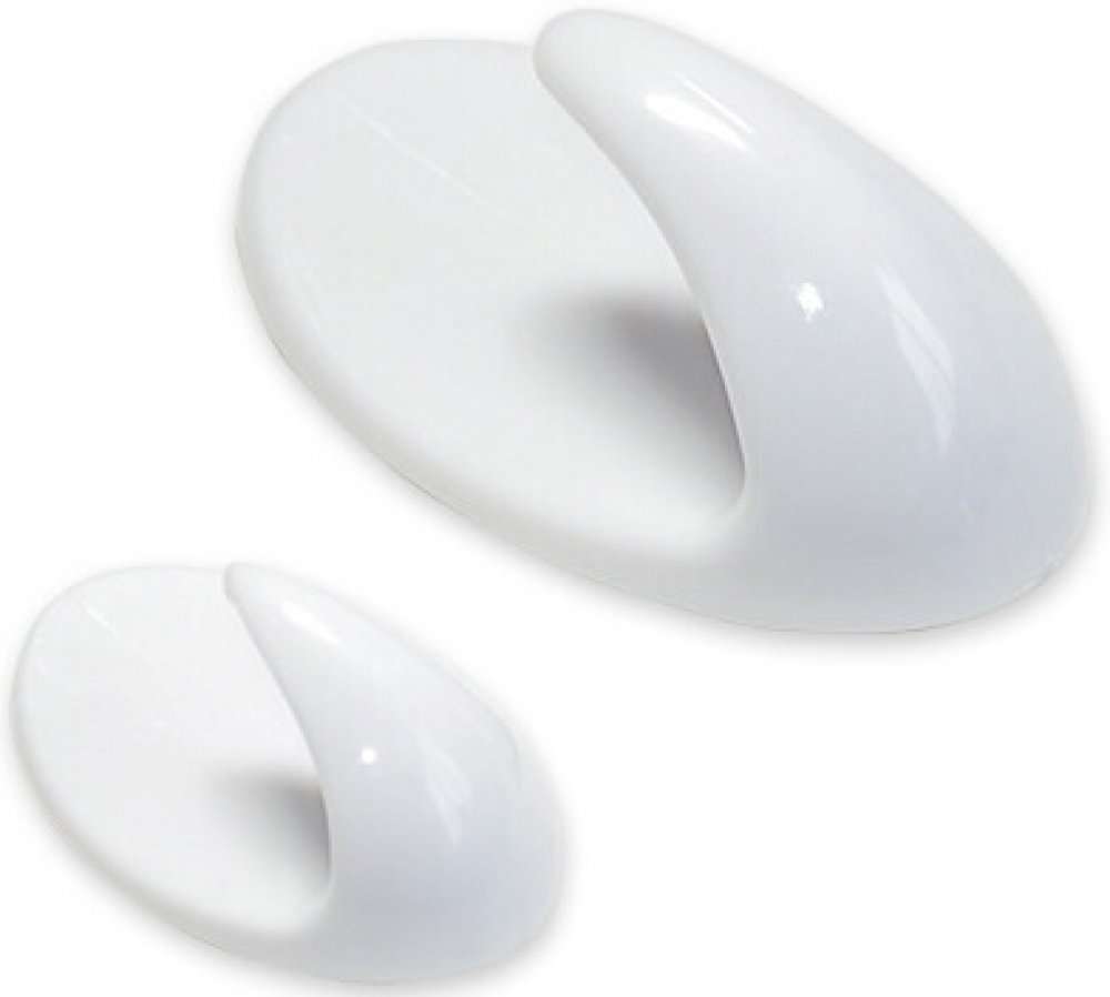 Háček samolepící - materiál: polypropylen, barva bílá. Velikost lepící plochy (oválu) u 6705-01 je 35x23mm. Velikost lepící plochy (oválu) u 6705-02 je 53x33mm.