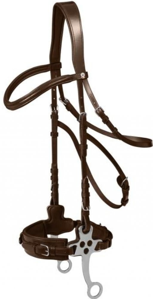 Elegantní anatomicky tvarovaná uzdečka hackamore. Má měkce vypodložený nátylník a jemná čelenka z kvalitní kůže.