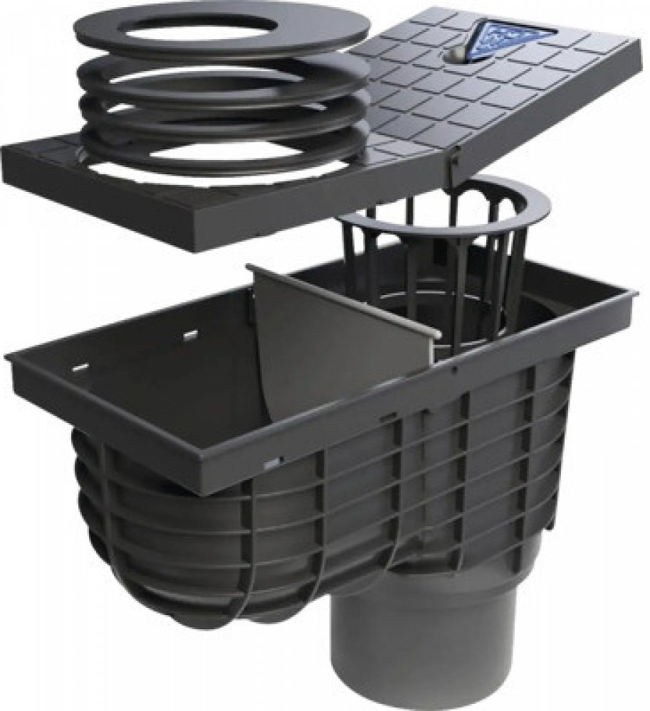 - Použití: Pro svádění dešťových a povrchových vod. Obsahuje těsnící kroužky pro připojení dešťových svodů různých průměrů (80, 90, 110, 125 mm), víko okapového svodu (lze nahradit mřížkou). Obsahuje suchou protizápachovou klapku, zabraňující zpětnému zápachu z kanalizačního potrubí. Součástí balení je návod k instalaci. Třída zatížení K3 – 300 kg. Oolnost do 90 °C, norma EN 1253-1.- Materiál: Pol...