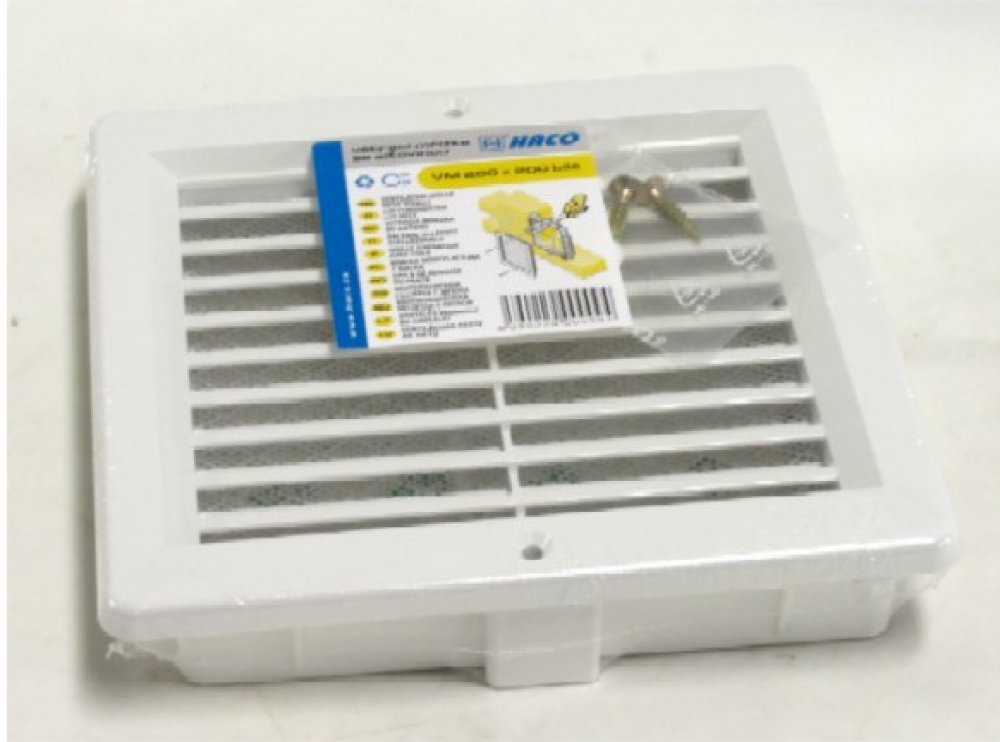 Čtvercová větrací mřížka HACO je určena pro montáž na fasádu či stěnu. Používá se uvnitř i venku, kde odolává venkovním podmínkám. Díky plastovému provedení je montáž snadná a rychlá. Je doplněna ochrannou síťkou proti vniknutí hmyzu. Mřížka vydrží i dlouhodobé působení UV záření. Součástí jsou i hmoždinky a vruty pro snadnou instalaci. Klíčové vlastnosti produktu Mřížka větrací se síťovinou VM, 2...