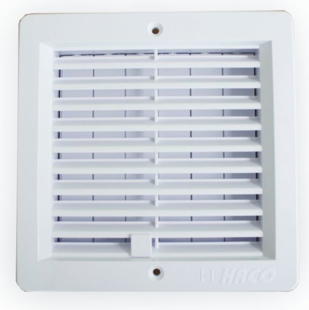 Plastová ventilační mřížka s regulací průtoku vzduchu Haco VMU 150x150 bílá s rámečkem