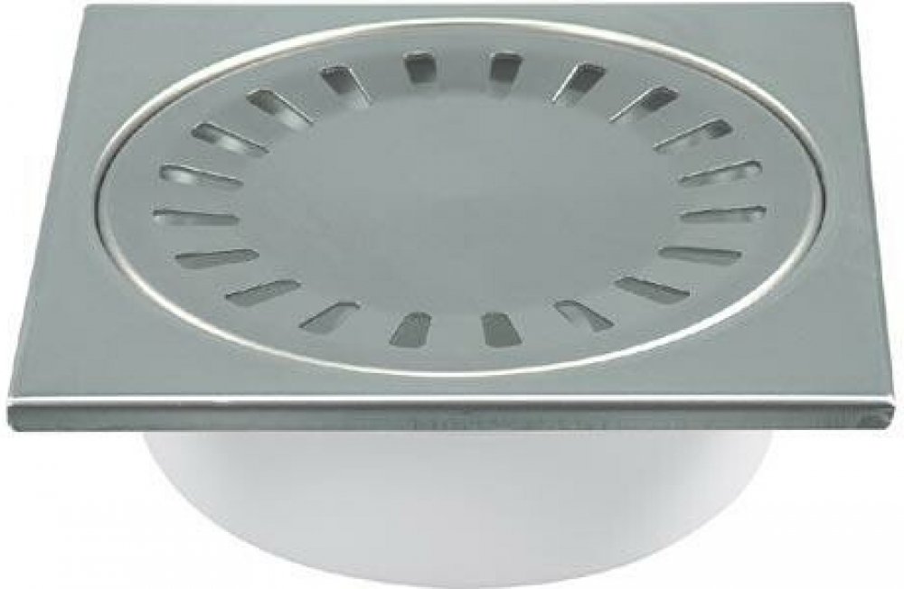 Podlahová vpusť spodní s přírubou - nerezová mřížka DN 50 s vodní hladinou, je určena pro vnitřní použití.