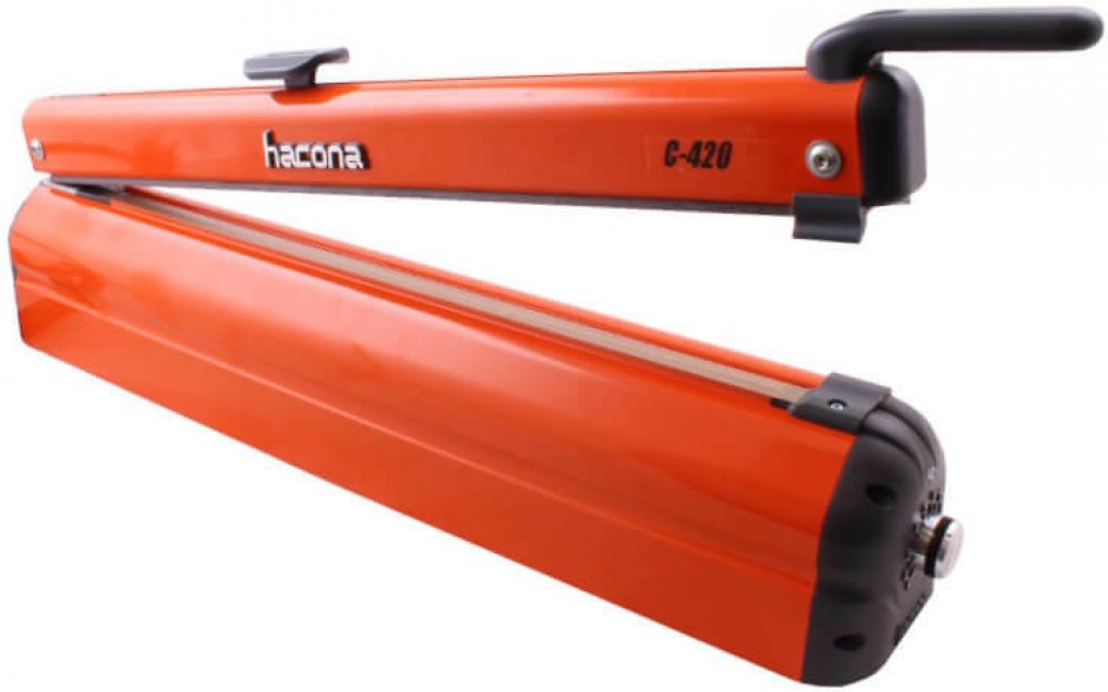 Profesionální impulsní svářečka folií Hacona C-420 s ořezem určená k výrobě sáčků, nebo jako běžný balící stroj na uzavírání plných sáčků. Svářečky Hacona jsou velice efektivním nástrojem jak pro obchody a průmyslové provozovny, tak i pro domácnosti.