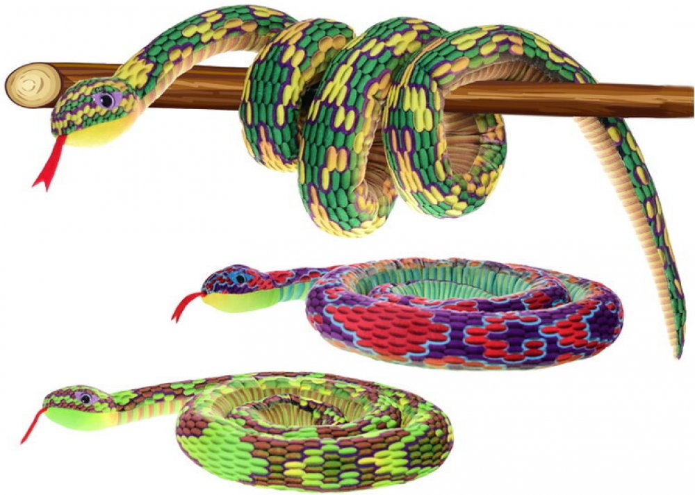Dlouhý plyšový had ve třech různých variantách.