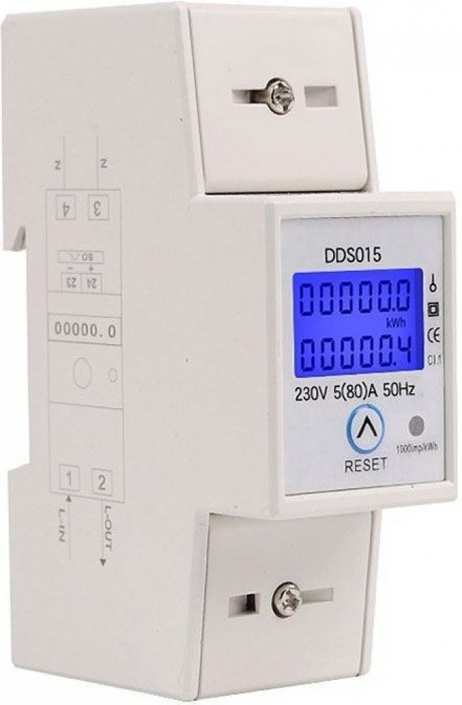 Elektroměr na DIN lištu DDS015 80A jednofázový s funkcí RESET (nulování)