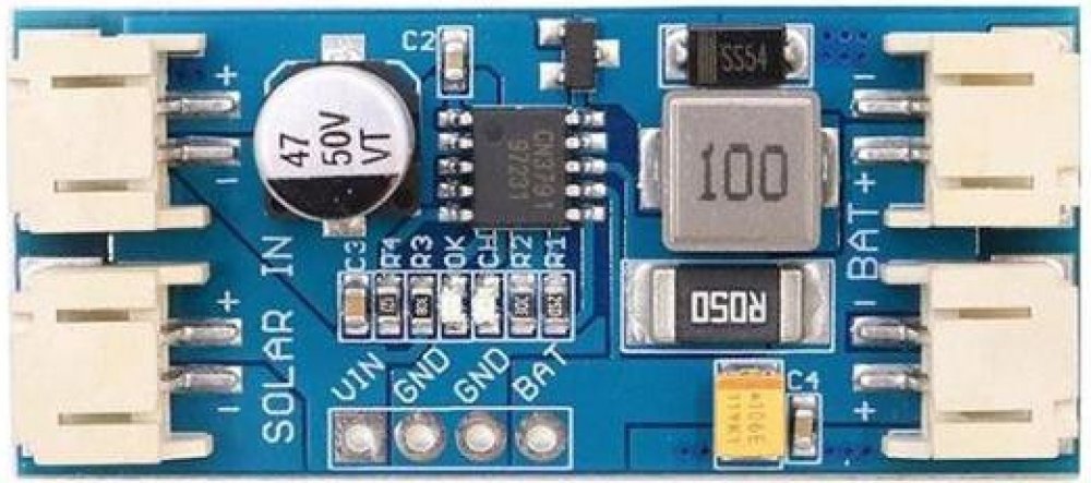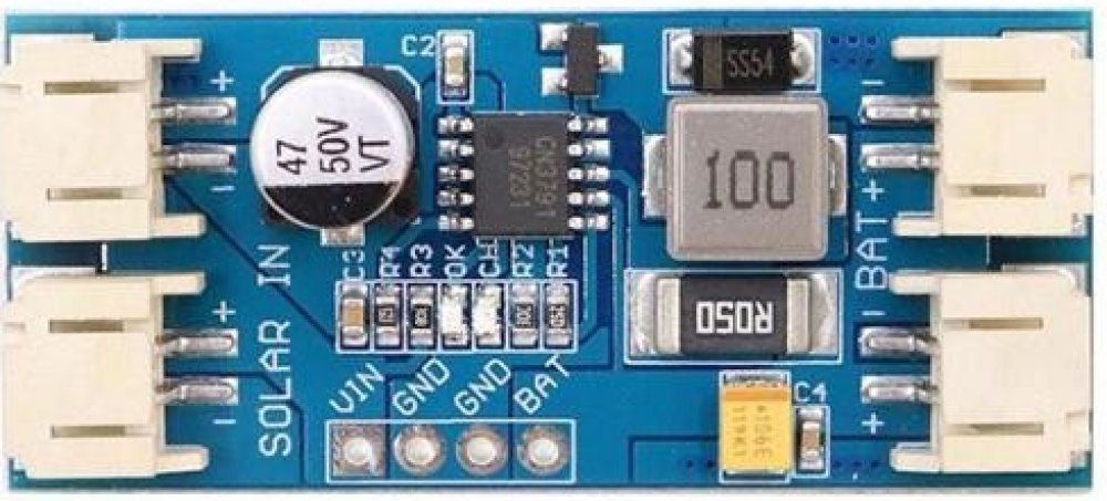 Solární regulátor MPPT pro jednočlánkové baterie Li-Pol a solární panely s pracovním napětím 6V. Technické parametry: - vstupní napětí: 5–8 V (určeno pro FV panel se systémovým napětím 6V) - výstupní napětí: 4,2 V pro nabíjení Li-Pol nebo Li-Ion článku 3,7V - nabíjecí proud: max. 2 A - možno připojit 1–2 FV panely - 4× konektor JST, včetně kabelů - spínací frekvence: 300 kHz - indikace stavu nabíjení a ukončení nabíjení - pracovní teplota: –40 °C až +85 °C - velikost: 45 x 20 x 9,5 mm Výrobek není samostatně funkční celek, vyžaduje odbornou montáž.