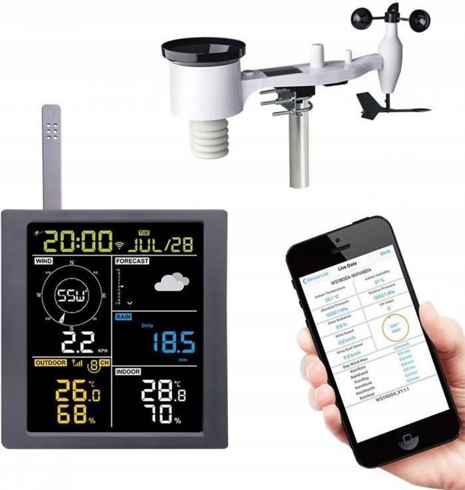 Ecowitt WN1920 je domácí meteostanice se vzdáleným přístupem, jejíž dada lze archivovat na webech Ecowitt/ Weather Underground, Weather Cloud a WOW. Data o počasí lze rovněž on-line zobrazovat na mobilním zařízení (Android nebo iOS) pomocí aplikace **Ecowitt nebo WS View Plus**, dostupné na Google Play. Venkovní jednotka měří rychlost a směr větru, teplotu, vlhkost a množství srážek.