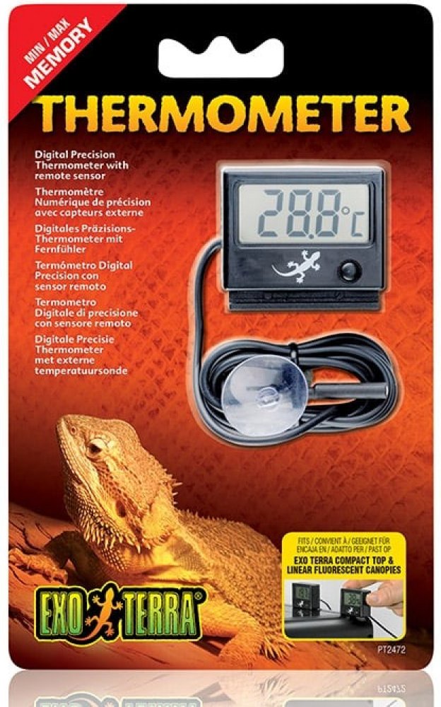 ExoTerra Teploměr digitální - Digitální samolepící teploměr s integrovanou pamětí pro maximální a minimální teplotu.