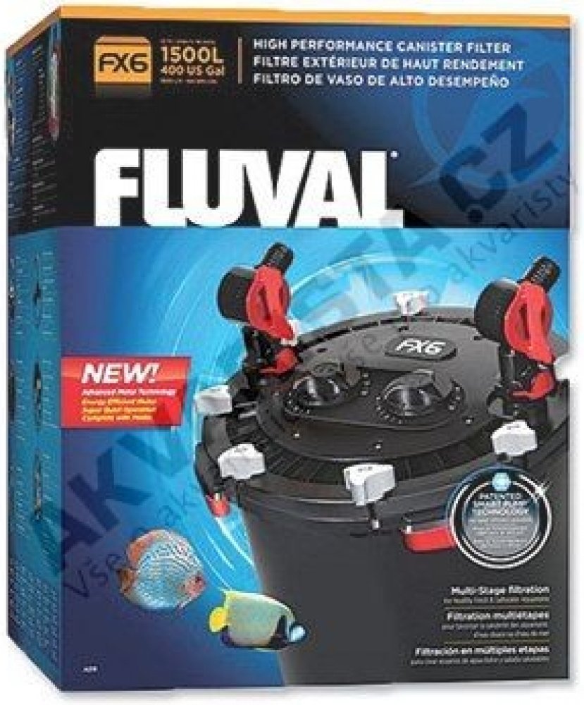 Nový vnější filtr Fluval FX6 má výkon čerpadla 3500 litrů vody za hodinu a má ohromující filtrační kapacitu média, která produkuje nejčistší a nejzdravější vodu vůbec. Filtrační média lze snadno umístit do odnímatelných zásobníků košů médií, které jsou ve středu vícestupňové filtrace. Koše jsou precizně navrženy k odstranění nečistot z vody, čímž je filtrace účinnější. Koše pojmou celkem 5,9 l médií a lze je štosovat v přesné kombinaci vrstev, pro co nejlepší vodu v akváriu. Každá z nich je obložena pěnovou vložkou pro efektivní mechanickém předčištění při filtrování. Snadné otvírání pomocí rukojeti umožňuje zvednout a oddělit koše rychle a snadno, takže běžná údržba je jednodušší.