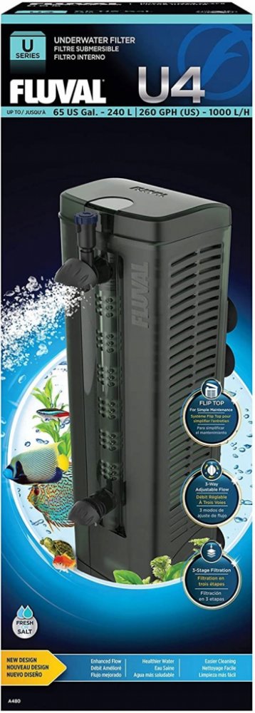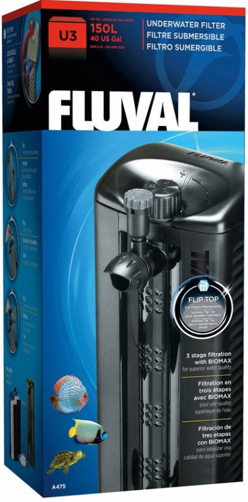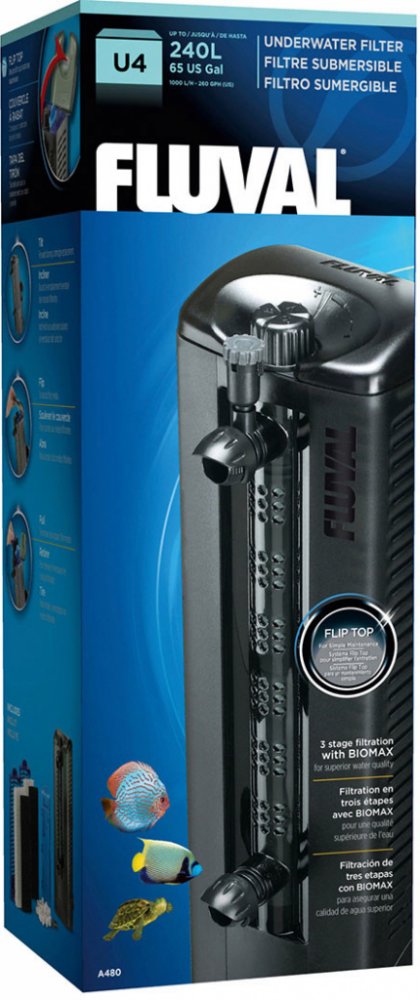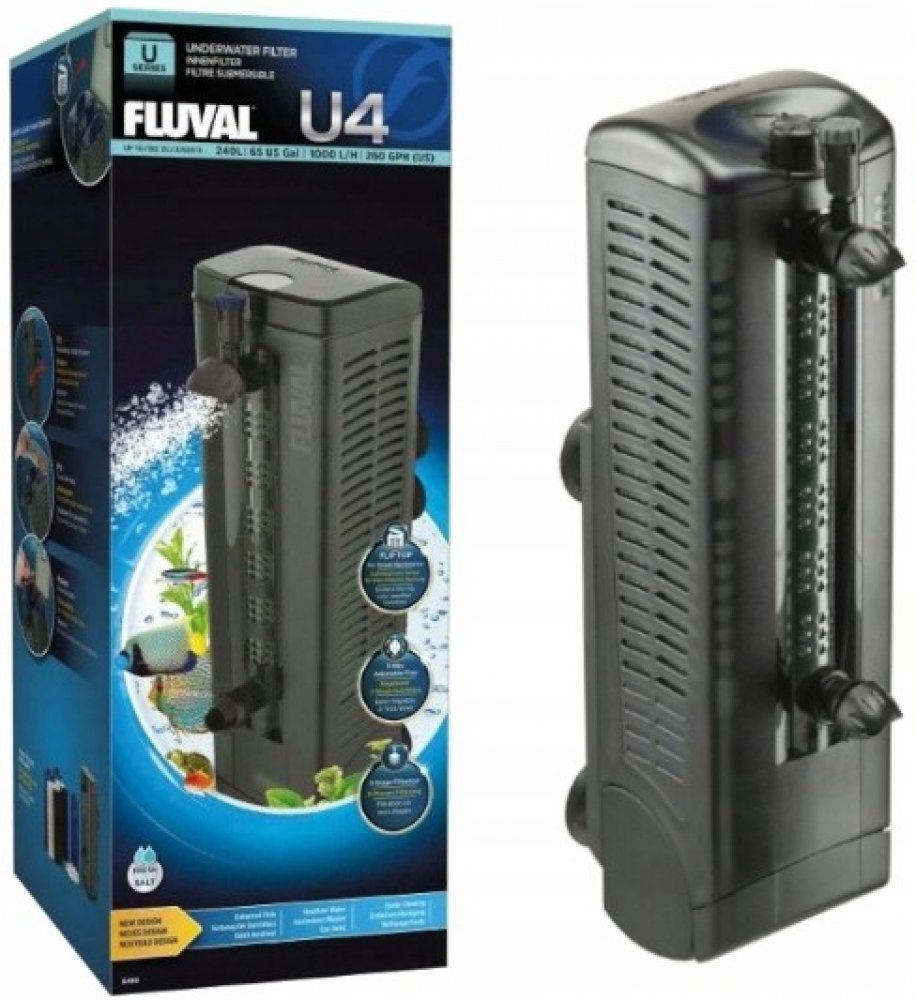 Filtr Fluval U4 je praktický a univerzální ponorný filtr. Lze ho použít v akváriích se sladkou i mořskou vodou a v akvateráriích. Jedna z výhod filtru je v instalační všestranosti- pomocí přísavek může být instalován vertikálně nebo v mělkých nádrží vodorovně. Filtr poskytuje kompletní a účinnou 3-stupňovou filtraci, včetně Biomax biol...