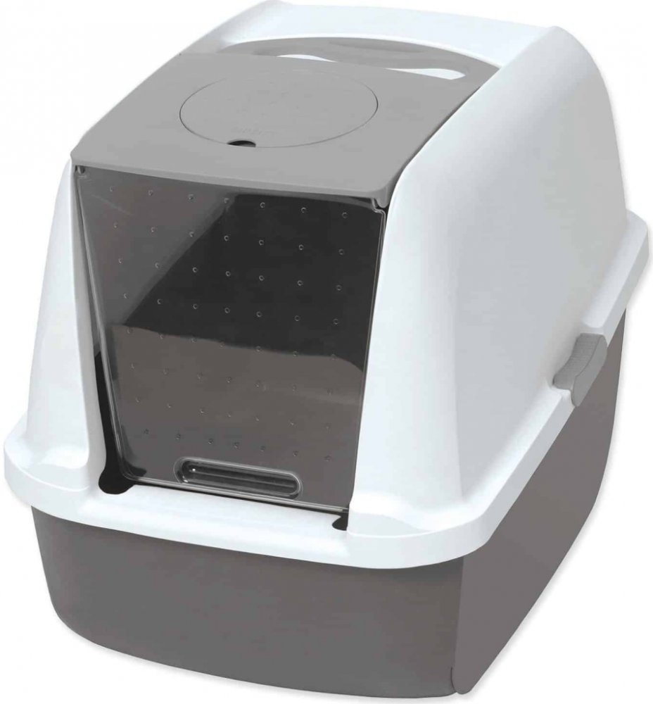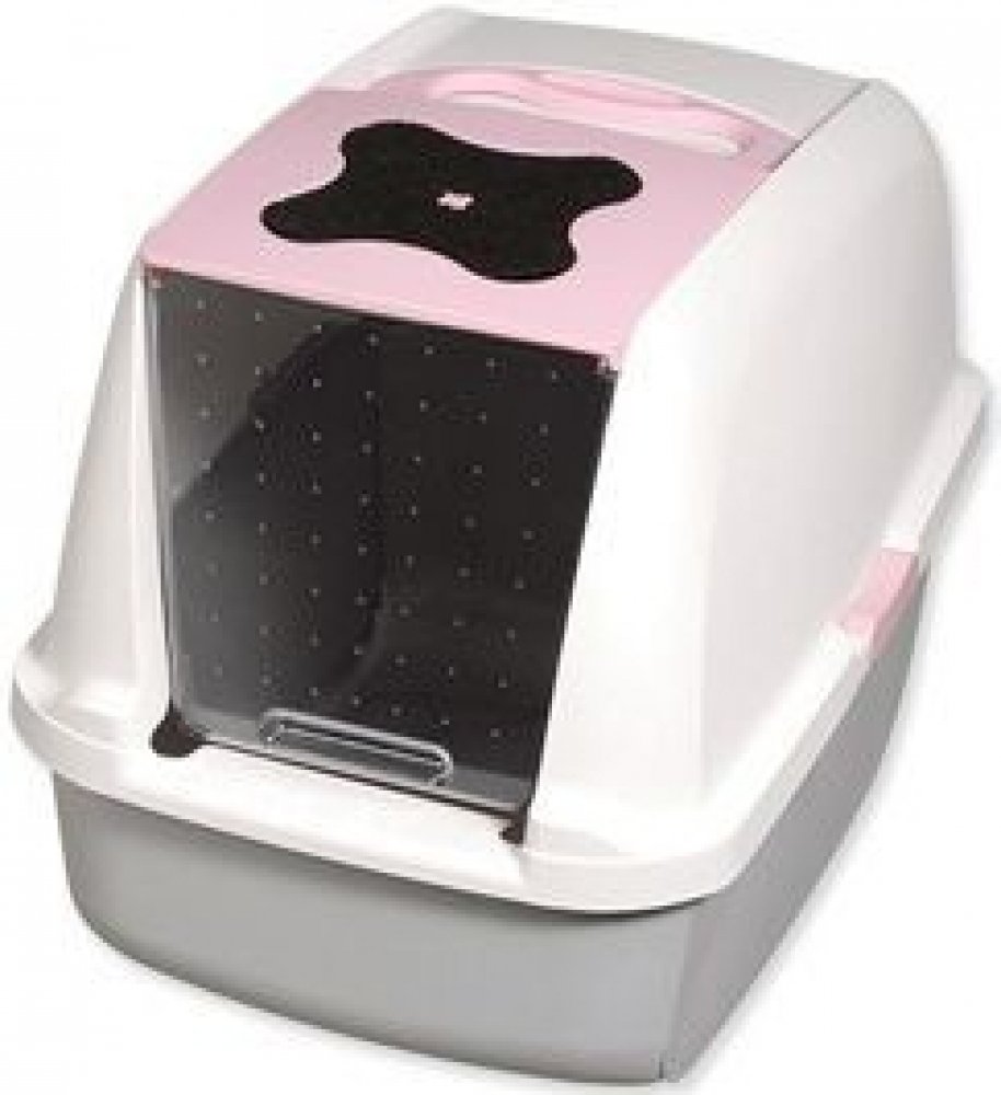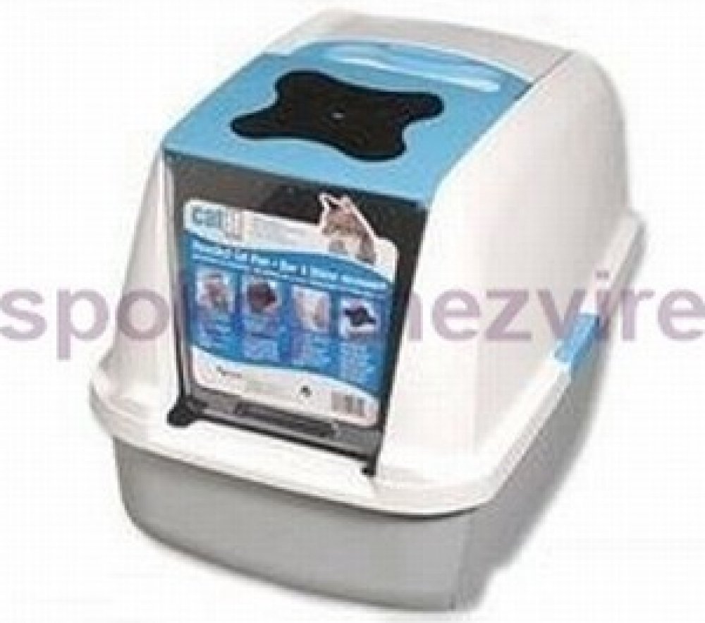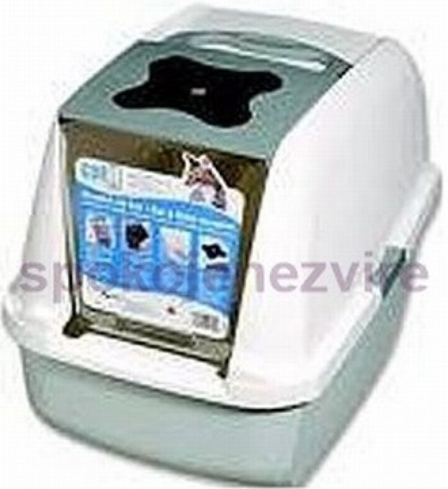 Plastová toaleta pro kočky s krytem. K této toaletě je možné dokoupit lopatku ve stejné barvě a náhradní filtry.
