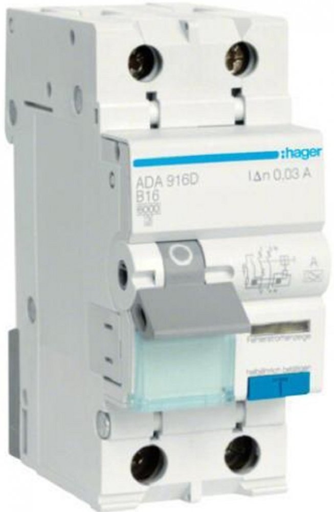 HAGER ADA916D Proud.chr. s nadpr.ochr. char. B, 2 pól, 6 kA, 0,03 A, In=16 A, A