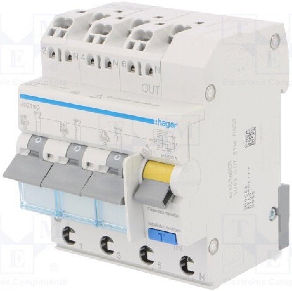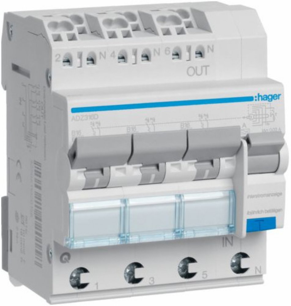 Architektura Poloha neutrálního vodiče: vpravo Počet zajištěných pólů: 3 počet pólů: 4 P typ pólu: 3x 1P+N Se spínajícím neutrálním vodičem: ano typ upevnění: DIN lišta vypínací charakteristika: B Hlavní elektrické prvky zkratová vypínací schopnost: 6 kA provozní napětí AC: 230 V frekvence: 50 Hz Druh napájecího napětí: AC Napětí jmenovité izolační napětí: 500 V jmenovité impulzní výdržné napětí...