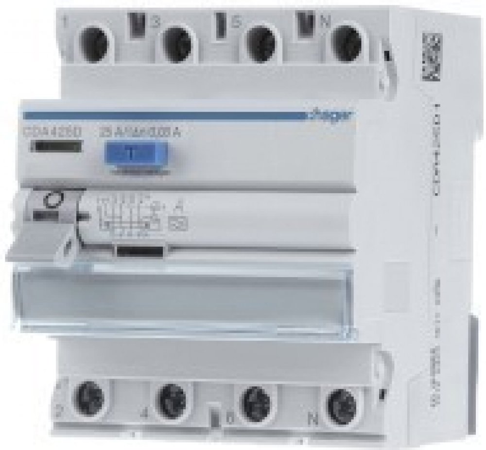 CDA425D Proudový chránič, 4P, 25A, 30mA, 6kA, typ: A, Hager
