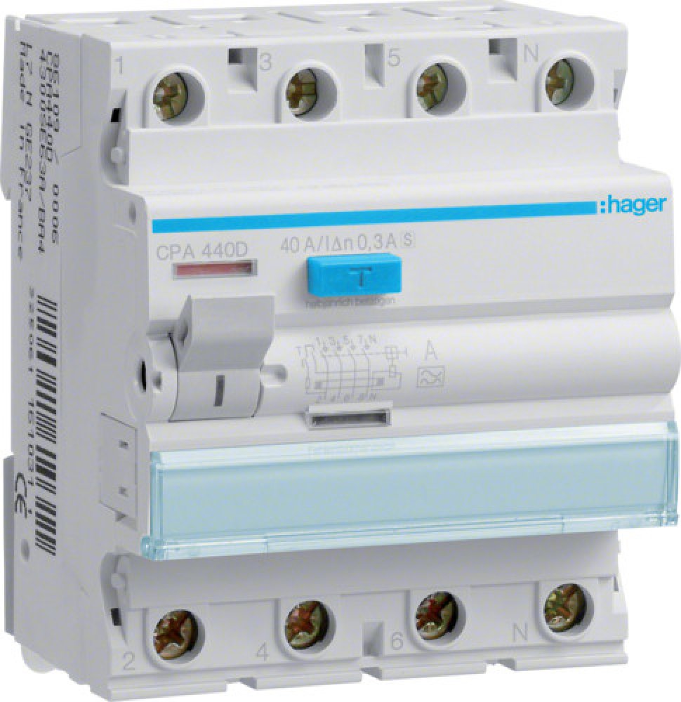 Hager CPA440D Proudový chránič 4 pól. 40 / 0,3 A A (S)