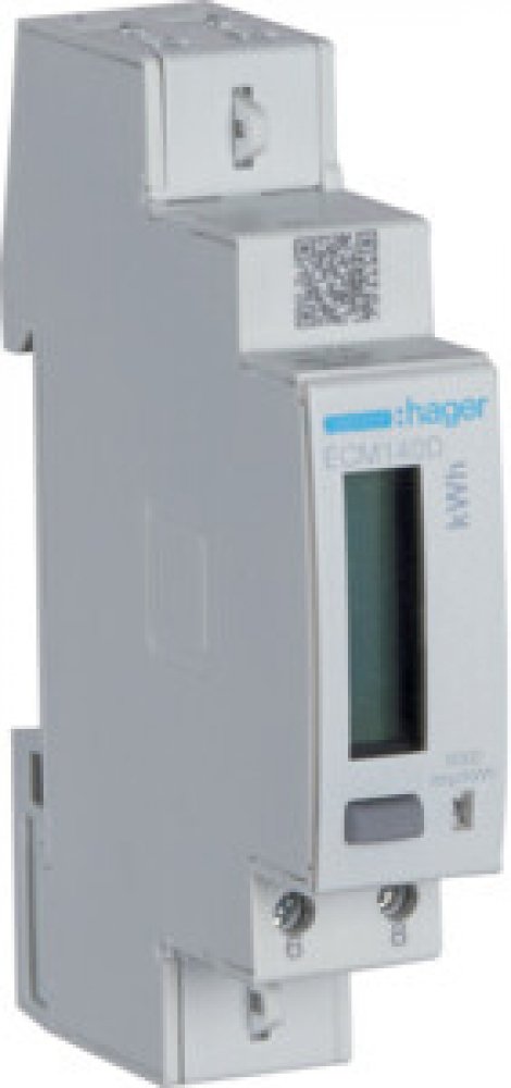 Digitální elektroměr pro inteligentní měření energie od společnosti Hager. Nová generace elektroměrů Hager je vybavena běžnými komunikačními rozhraními, která zaznamenávají veškerou spotřebu a v případě potřeby tyto informace předávají. Digitální elektroměry Hager nabízí řešení šitá na míru pro každou aplikaci – s volitelným měřením impulzů, s rozhraním M-Bus nebo s rozhraním Modbus a v případě potřeby také s přepínáním tarifů. Což je ideální pro inteligentní monitorování energie v obytných a komerčních budovách. Technické parametry: Počet pólů: 2 P Typ pólu: 1P+N Typ upevnění: na DIN lištu (horní lištu) Třída přesnosti: B Frekvence: 50 Hz Druh napájecího napětí: AC Provozní napětí AC: 92/276 V Maximální provozní napětí: 300 V Jmenovité impulzní výdržné napětí: 6 kV Záběrový proud: 0,02 A Provozní proud: 0,02/40 A Maximální proud (I max) měřicího obvodu: 40 A Příkon: 2 VA Celkový ztrátový výkon při jmenovitém proudu: 1 W Měřicí rozsah frekvence: od 45 do 65 Hz Druh měřicího přístroje: elektronicky Napájecí napětí: 230V ± 20% Utahovací moment: 1 Druh montáže: DIN lišta Průřez vedení vstupní vedení počitadla: 16 mm² Průřez vedení výstupní vedení počitadla: 16 mm² Nastavitelný převod měniče: ne Provedení ovládacího panelu: LCD Provedení elektroměru: počítadlo jedné fáze Normy: EN 50470-1 / 3, IEC 62053-21 / 23, IEC 61557-12 Evropská direktiva WEEE: dotčeno Třída izolace: třída izolace II Krytí IP: IP20 Stupeň znečištění podle IEC 60664 / IEC 60947-2: 2 Provozní teplota: od -25 °C do 55 °C Výška n.m.: 2000 m Skladovací teplota: od -25 °C do 70 °C Rozměry: Hloubka: 60 mm Výška: 92 mm Šířka: 18 mm
