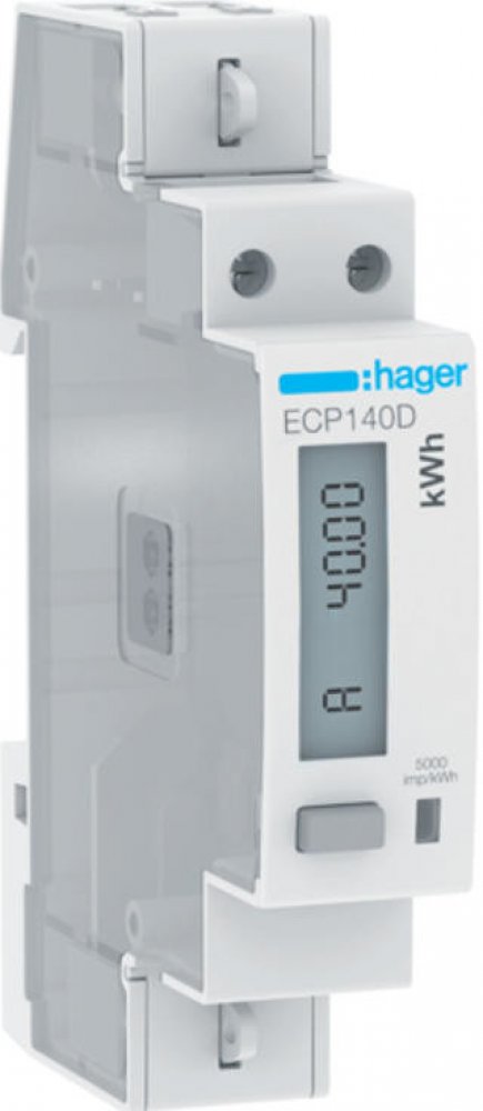 Digitální elektroměr pro inteligentní měření energie od společnosti Hager. Nová generace elektroměrů Hager je vybavena běžnými komunikačními rozhraními, která zaznamenávají veškerou spotřebu a v případě potřeby tyto informace předávají. Digitální elektroměry Hager nabízí řešení šitá na míru pro každou aplikaci – s volitelným měřením impulzů, s rozhraním M-Bus nebo s rozhraním Modbus a v případě potřeby také s přepínáním tarifů. Což je ideální pro inteligentní monitorování energie v obytných a komerčních budovách. Technické parametry: Počet pólů: 2 P Typ pólu: 1P+N Typ upevnění: na DIN lištu (horní lištu) Třída přesnosti: B Frekvence: 50 Hz Druh napájecího napětí: AC Provozní napětí AC: 92/276 V Maximální provozní napětí: 300 V Jmenovité impulzní výdržné napětí: 6 kV Záběrový proud: 0,02 A Provozní proud: 0,02/40 A Maximální proud (I max) měřicího obvodu: 40 A Příkon: 2 VA Celkový ztrátový výkon při jmenovitém proudu: 1 W Měřicí rozsah frekvence: od 45 do 65 Hz Druh měřicího přístroje: elektronicky Napájecí napětí: 230V ± 20% Utahovací moment: 1 Druh montáže: DIN lišta Průřez vedení vstupní vedení počitadla: 16 mm² Průřez vedení výstupní vedení počitadla: 16 mm² Nastavitelný převod měniče: ne Provedení ovládacího panelu: LCD Provedení elektroměru: počítadlo jedné fáze Normy: EN 50470-1 / 3, IEC 62053-21 / 23, IEC 61557-12 Evropská direktiva WEEE: dotčeno Třída izolace: třída izolace II Krytí IP: IP20 Stupeň znečištění podle IEC 60664 / IEC 60947-2: 2 Provozní teplota: od -25 °C do 55 °C Výška n.m.: 2000 m Skladovací teplota: od -25 °C do 70 °C Rozměry: Hloubka: 60 mm Výška: 92 mm Šířka: 18 mm