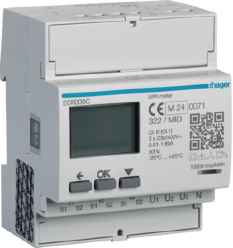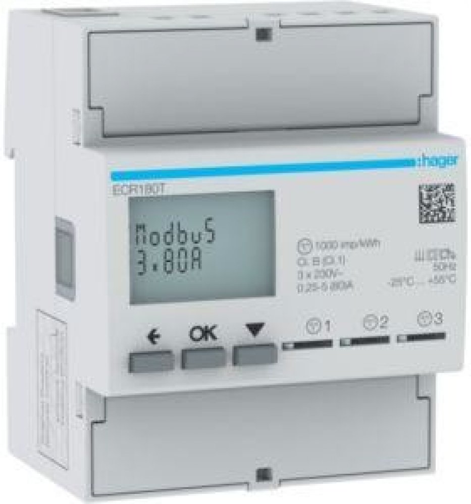 Digitální elektroměr 3F, 2Tar. nepřímé měř. x/5 (6000 A), s Modbus výstupem, MID